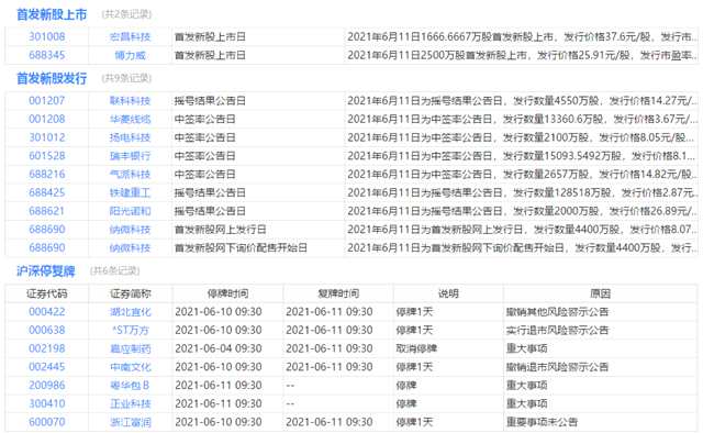 今日上市、申購、停復(fù)牌、特別處理、限售解禁等提醒: