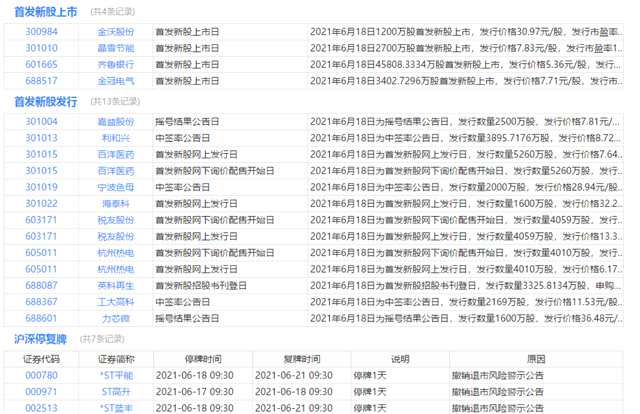 今日上市、申購、停復(fù)牌、限售解禁等提醒: