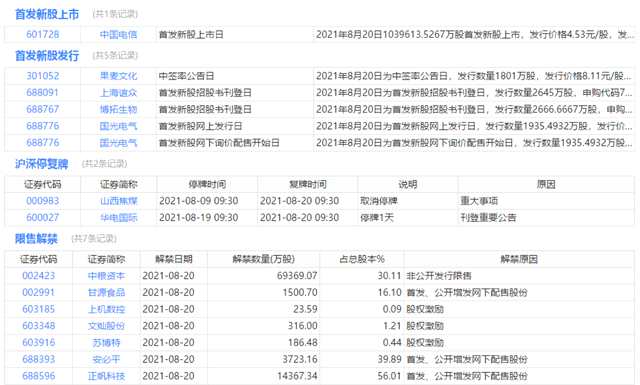 今日上市、申購、停復(fù)牌、限售解禁等提醒: