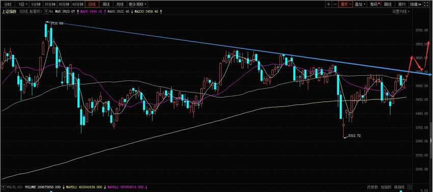 技術(shù)面上看,周五上證指數(shù)底部反彈后,近幾日反復(fù)爭(zhēng)奪60日均線,短線我們要關(guān)注60日線收盤(pán)能否有效收回,如果有效收回,可上看壓力3612點(diǎn)一線,如不能收回,可暫時(shí)以10天線為界逢低做多,