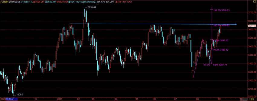 技術(shù)面上看,目前上證指數(shù)已經(jīng)到了關(guān)鍵位置,能否順利突破6月高點3629點很快就見分曉,如能有效突破將有望繼續(xù)上攻年初高點3731點附近。不過從空間測量來說,7月28日--8月12日的上漲剛剛好和8月20日以來的漲幅一致,我們需要留意沖高回落的風(fēng)險。