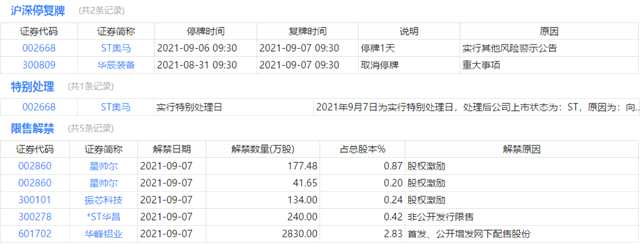 今日上市、申購、停復(fù)牌、被ST、限售解禁等提醒: