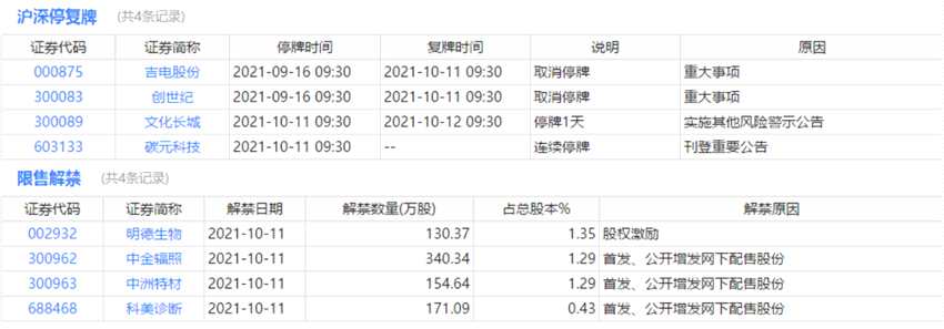 今日上市、申購(gòu)、停復(fù)牌、限售解禁等提醒: