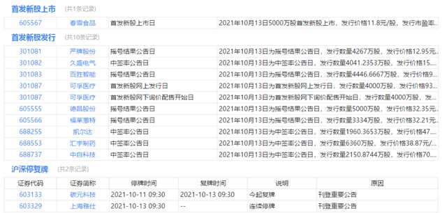今日上市、申購、停復(fù)牌、限售解禁等提醒: