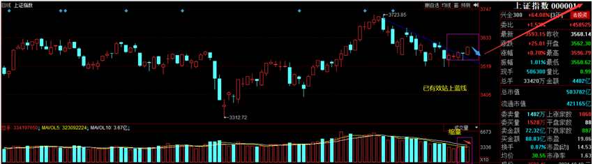 根據(jù)經(jīng)典技術(shù)分析,有效站上壓力位后,或有效突破頸線后,基本都有向下回抽確認(rèn)動(dòng)作。今日滬指有效站上藍(lán)線,后幾日隨時(shí)應(yīng)該有回抽短調(diào),這個(gè)和今日縮量的暗示是一致的。回抽時(shí),由于藍(lán)線是下移狀態(tài),不排除滬指會(huì)出現(xiàn)極端走勢(shì)比如考驗(yàn)甚至略破3515。