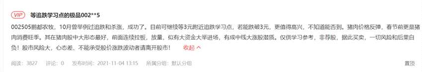 喜報(bào):11月4日舉例002505【鵬都農(nóng)牧(002505)、股吧】,11月5日和本周多次到達(dá)3元附近追跌學(xué)習(xí)點(diǎn),今天無(wú)懼大小非減持,怒封漲停!下面是舉例截圖,對(duì)照K線,好好體會(huì)秦氏戰(zhàn)法追跌、殺漲選股思路,發(fā)掘類似機(jī)會(huì)!