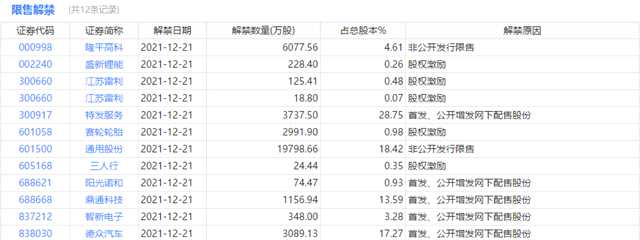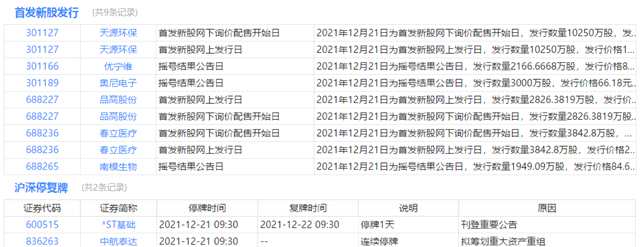 今日申購、停復牌、限售解禁等提醒: