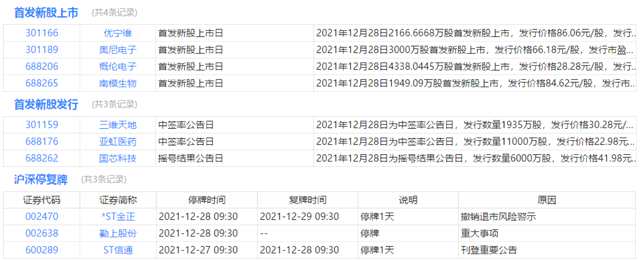 今日上市、申購(gòu)、停復(fù)牌、限售解禁等提醒:
