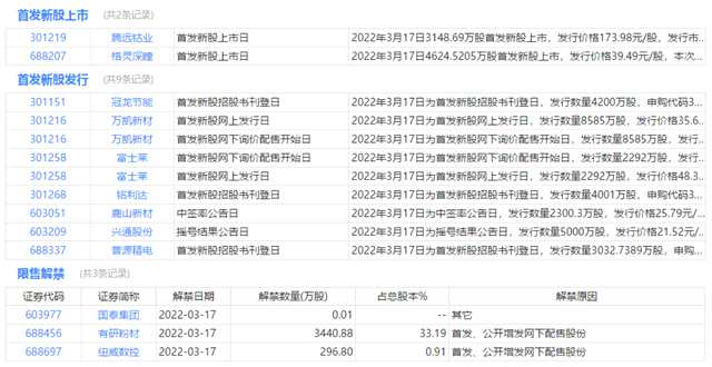 今日上市、申購(gòu)、限售解禁等提醒: