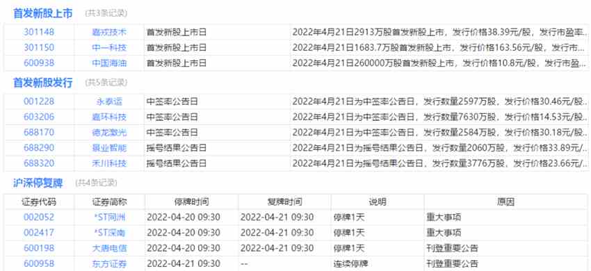 今日上市、申購、停復(fù)牌、被ST、撤銷ST、限售解禁等提醒: