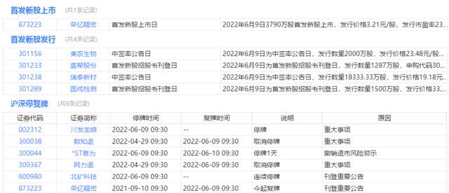 今日上市、中簽、停復(fù)牌、限售解禁等提醒: