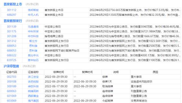 今日上市、中簽、停復(fù)牌、退市、限售解禁等提醒: