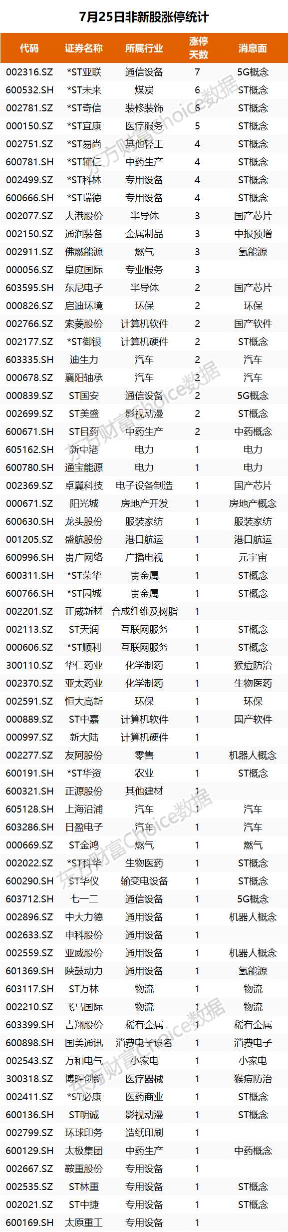 7月25日非新股漲停統(tǒng)計(jì)