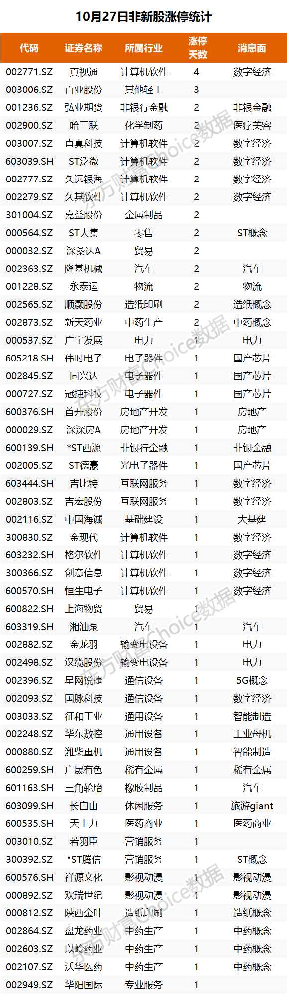 今日合計(jì)有52股漲停,上個(gè)交易日84股漲停。申萬(wàn)一級(jí)行業(yè)中,計(jì)算機(jī)、傳媒領(lǐng)漲兩市?! ?img rel='nofollow' src='http://image.yjcf360.com/202210/ceedd760d52e422aa73fc67963f8a5fe.png' border='0' onload='javascript:if(this.width>500)this.width=500' align='center' hspace=10 vspace=10 alt=''> 10月27日非新股漲停統(tǒng)計(jì)