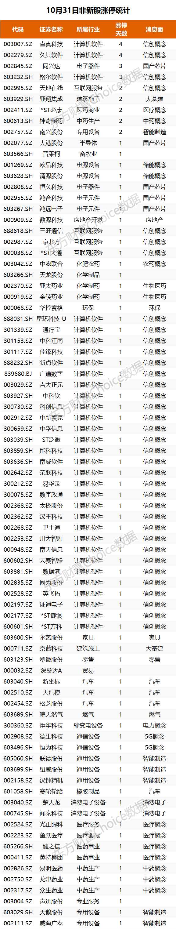 10月31日非新股漲停統(tǒng)計(jì)