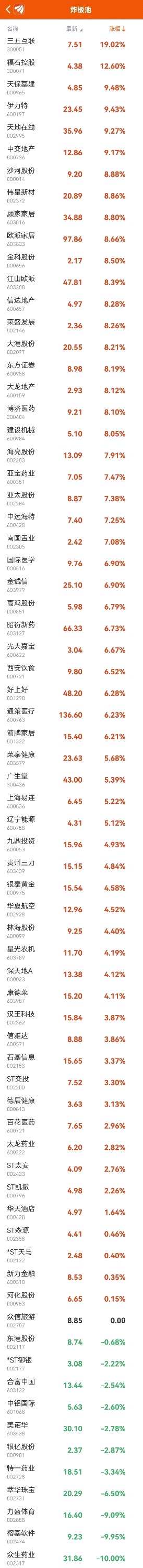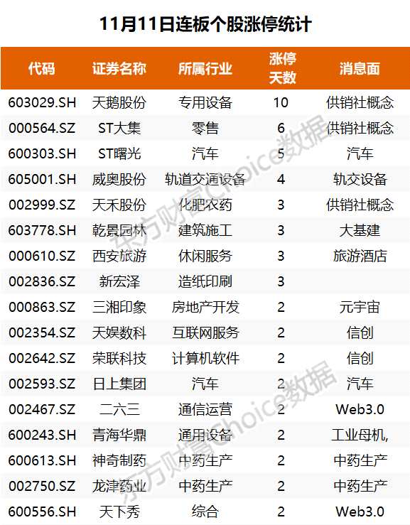 漲停個股方面,供銷社概念股持續(xù)強勢,【天鵝股份(603029)、股吧】10連板,天禾股份3連板,ST大集6天5板;WEB3.0分化,二六三、天下秀等漲停,中文在線跌超6%;房地產(chǎn)午后大漲,板塊內(nèi)個股掀漲停潮,保利發(fā)展、金地集團(tuán)、濱江集團(tuán)等漲停,此外地產(chǎn)產(chǎn)業(yè)鏈個股也集體走強,東方雨虹、兔寶寶等多股漲停;醫(yī)藥板塊調(diào)整,眾生藥業(yè)上演“天地板”,康希諾全天振幅超30%。