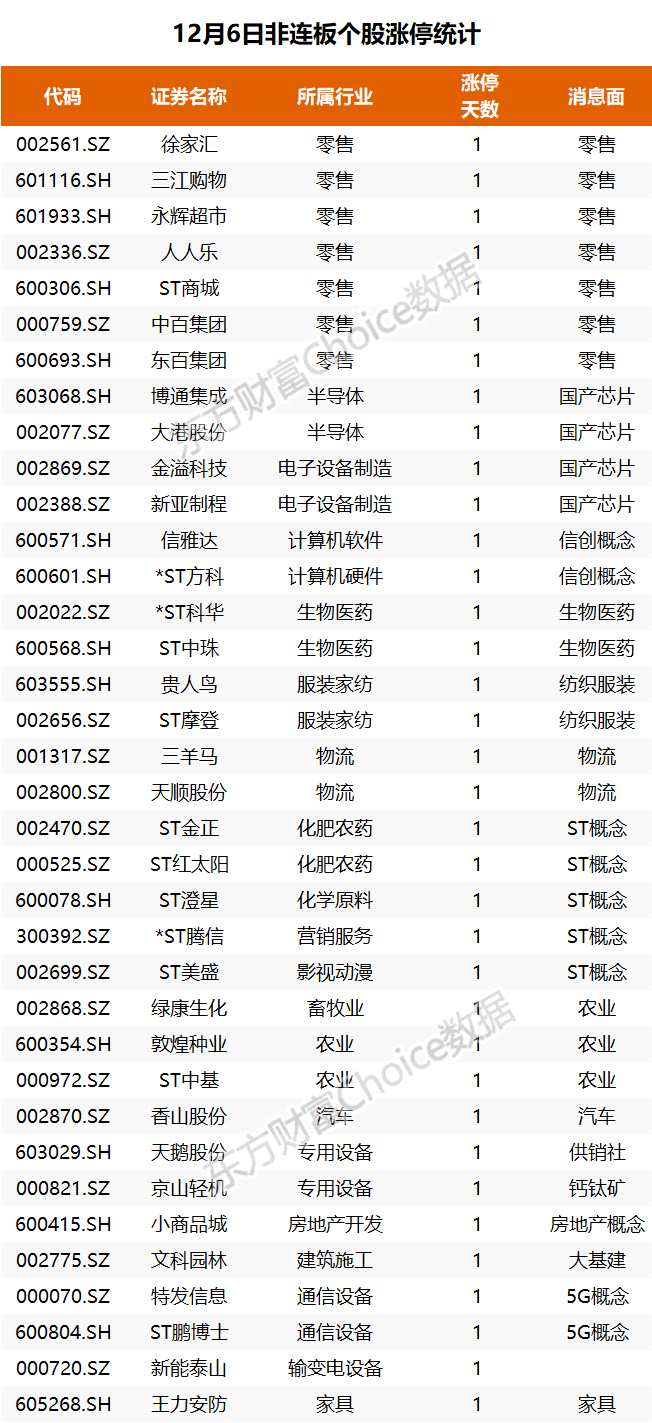 個股方面,新冠藥概念以嶺藥業(yè)盤中一度創(chuàng)歷史新高,收盤跌超2%;消費股表現(xiàn)活躍,零售概念全天強勢領(lǐng)漲,徐家匯、永輝超市、中百集團等近10股漲停;賽道股展開反彈,半導(dǎo)體及元件概念領(lǐng)漲,【滿坤科技(301132)、股吧】漲超10%,博通集成、大港股份漲停;信創(chuàng)概念英飛拓尾盤封板,錄得4連板;高位股集體退潮,多股炸板,永順泰上演天地板;醫(yī)藥商業(yè)方向領(lǐng)跌,嘉事堂、一心堂跌停?! ?img rel='nofollow' src='http://image.yjcf360.com/202212/07f08252c0354c2fbf7e351325447b87.png' border='0' onload='javascript:if(this.width>500)this.width=500' align='center' hspace=10 vspace=10 alt=''>