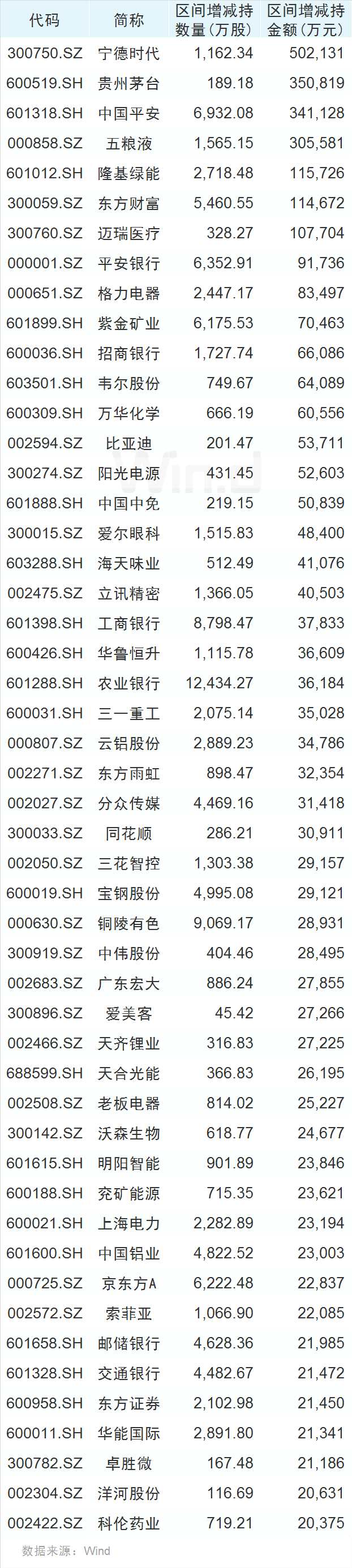 (注:增減持金額=增減持?jǐn)?shù)量*1月10日收盤價(jià),下同)