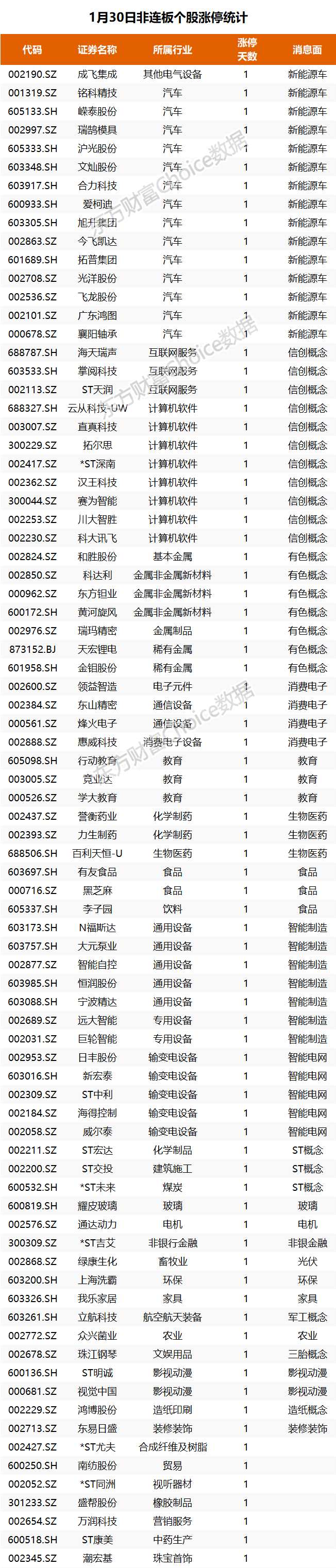 個(gè)股方面,新能源車漲停潮,今飛凱達(dá)、文燦股份、旭升股份、拓普集團(tuán)等超20股漲停;信創(chuàng)概念強(qiáng)勢(shì),二三四五、久其軟件2連板,人工智能方向爆發(fā),拓爾思、云從科技、賽為智能均20CM漲停;軍工概念強(qiáng)勢(shì),立航科技、成飛集成、中航產(chǎn)融漲停;教育股午后走強(qiáng),學(xué)大教育、行動(dòng)教育、豆神教育漲停?! ?img rel='nofollow' src='http://image.yjcf360.com/202301/1cb22e0eae2c422eb67230e01a496147.png' border='0' onload='javascript:if(this.width>500)this.width=500' align='center' hspace=10 vspace=10 alt=''>