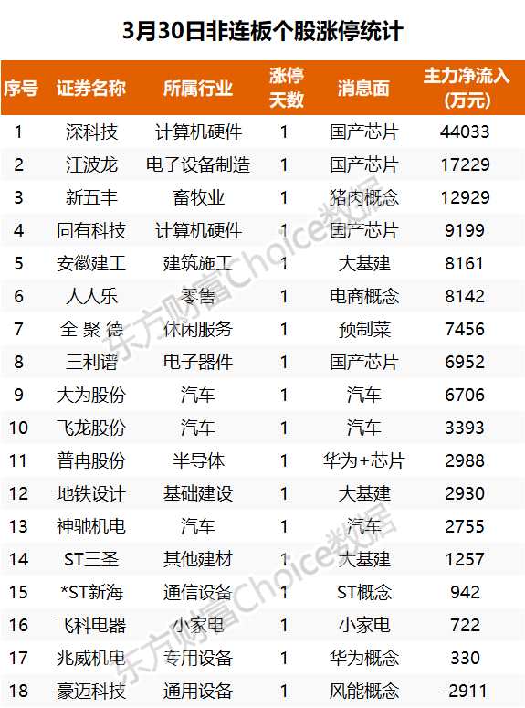 從首次封板時間角度看,今日19只非ST股中,飛龍股份、聯(lián)合水務(wù)在集合競價時間段就觸板?! ?img rel='nofollow' src='http://image.yjcf360.com/202303/ee07c3ee86f94fc3b98b2775b6aa8196.png' border='0' onload='javascript:if(this.width>500)this.width=500' align='center' hspace=10 vspace=10 alt=''>