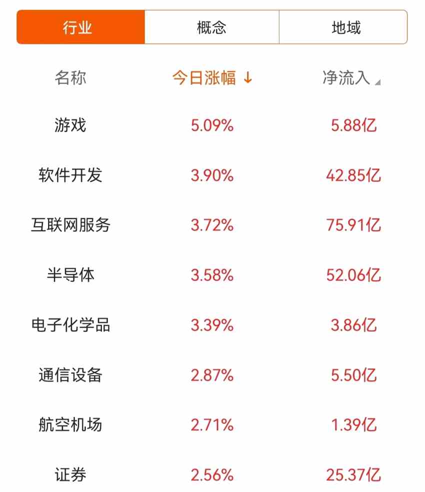 板塊方面,游戲、軟件、半導(dǎo)體等板塊漲幅居前;貴金屬、醫(yī)療、醫(yī)藥商業(yè)、汽車等板塊跌幅居前。