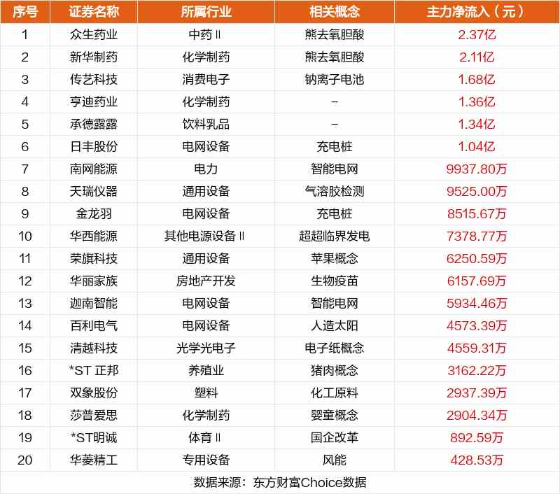 非連板個股方面,眾生藥業(yè)、新華制藥、傳藝科技主力資金凈流入居前。