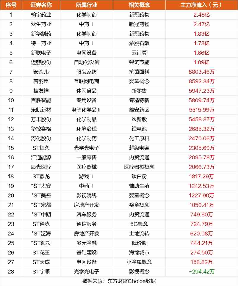非連板個股方面,翰宇藥業(yè)、眾生藥業(yè)、新華制藥主力資金凈流入居前。