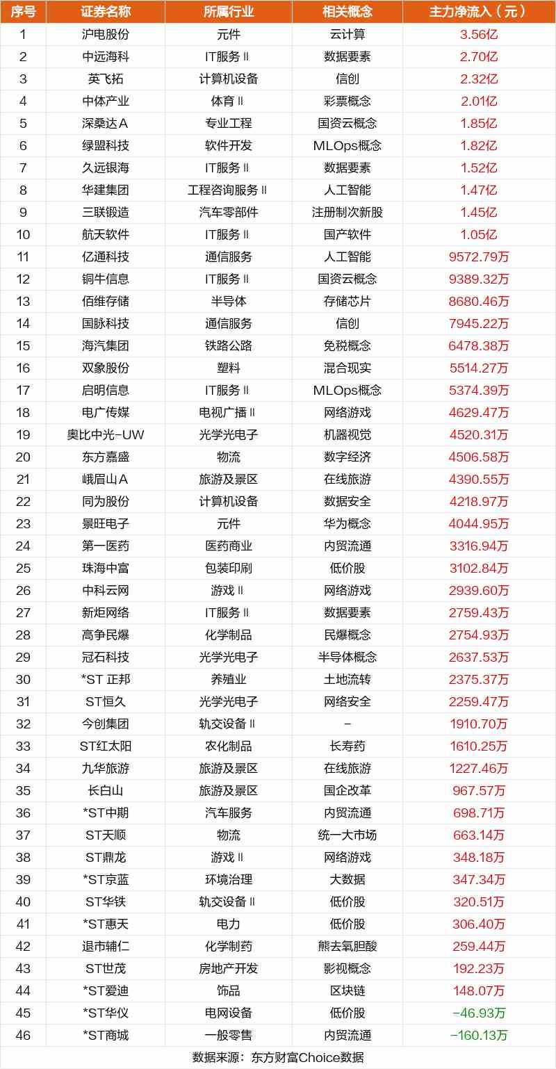 非連板個股方面,滬電股份、中遠???、英飛拓主力資金凈流入居前。