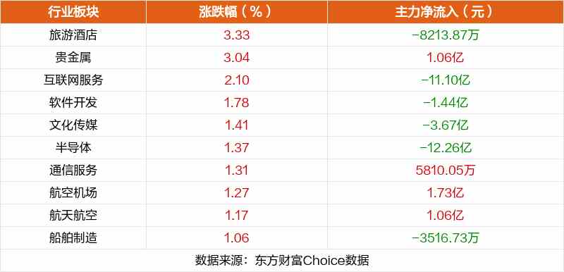 板塊方面,旅游酒店、貴金屬、互聯(lián)網(wǎng)服務(wù)等板塊漲幅居前,公用事業(yè)、煤炭行業(yè)、電力行業(yè)等板塊跌幅居前。