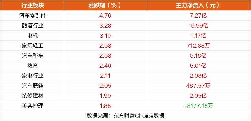 板塊方面,汽車零部件、釀酒行業(yè)、電機等板塊漲幅居前,貴金屬、電力行業(yè)、銀行等板塊跌幅居前。