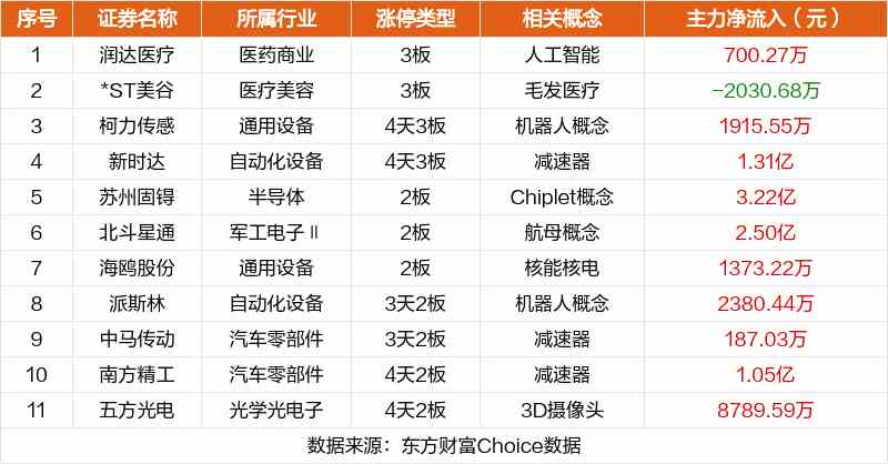 其中,人工智能潤達(dá)醫(yī)療3板,毛發(fā)醫(yī)療*ST美谷3板,機(jī)器人概念柯力傳感4天3板。