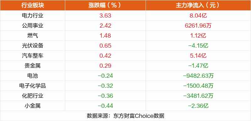 板塊方面,電力行業(yè)、公用事業(yè)、燃氣等板塊漲幅居前,互聯(lián)網(wǎng)服務(wù)、文化傳媒、軟件開發(fā)等板塊跌幅居前。