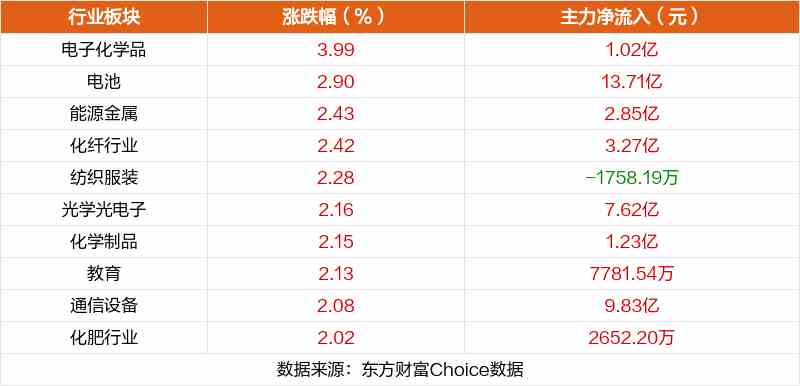 板塊方面,電子化學(xué)品、電池、能源金屬等板塊漲幅居前,游戲、電力行業(yè)、公用事業(yè)等板塊跌幅居前。