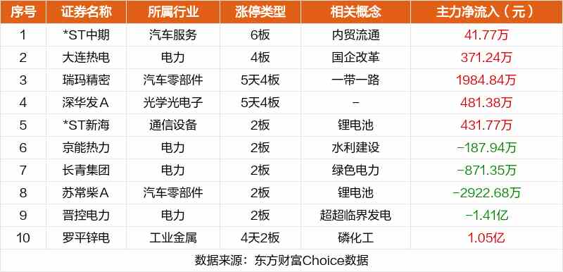 7月10日漲停復(fù)盤:ST中期6連板 大連熱電4連板
