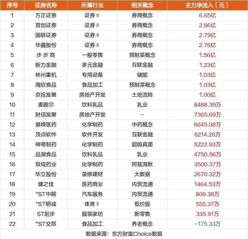 非連板個(gè)股方面,方正證券、首創(chuàng)證券、國(guó)聯(lián)證券主力資金凈流入居前。