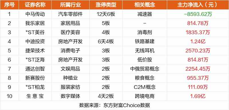 9月1日漲停復(fù)盤:中馬傳動12天6板 我樂家居5連板