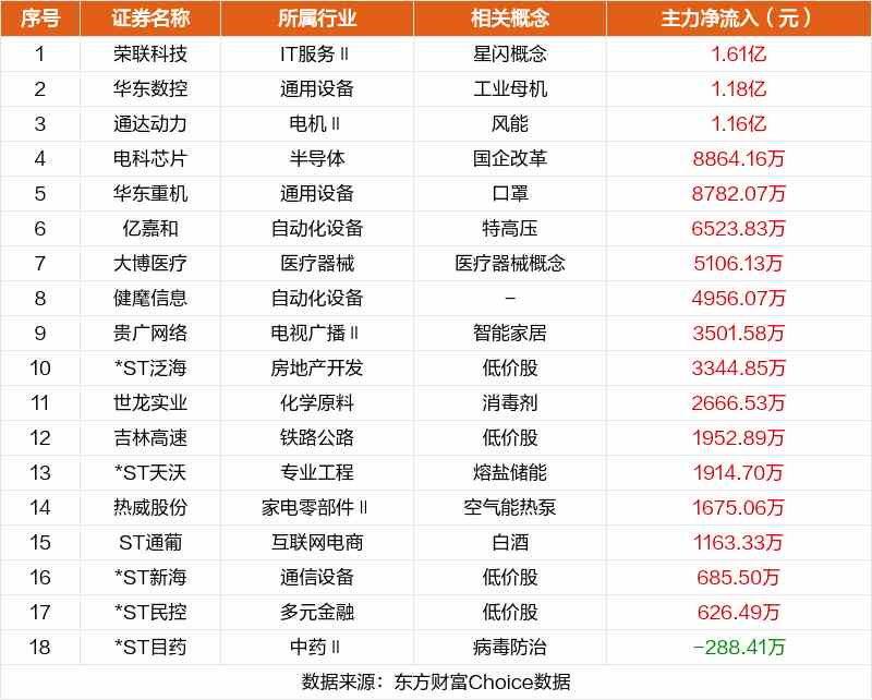 非連板個(gè)股方面,榮聯(lián)科技、華東數(shù)控、通達(dá)動力主力資金凈流入居前。