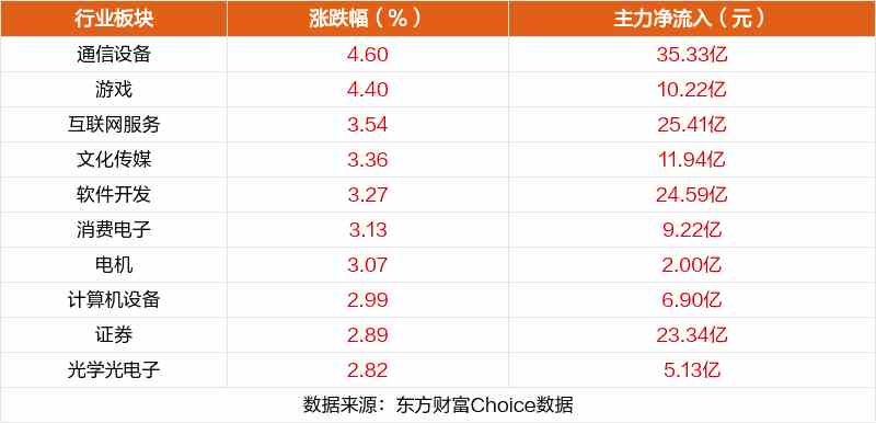 板塊方面,通信設備、游戲、互聯(lián)網(wǎng)服務等板塊漲幅居前,貴金屬、煤炭行業(yè)、鐵路公路等板塊跌幅居前。