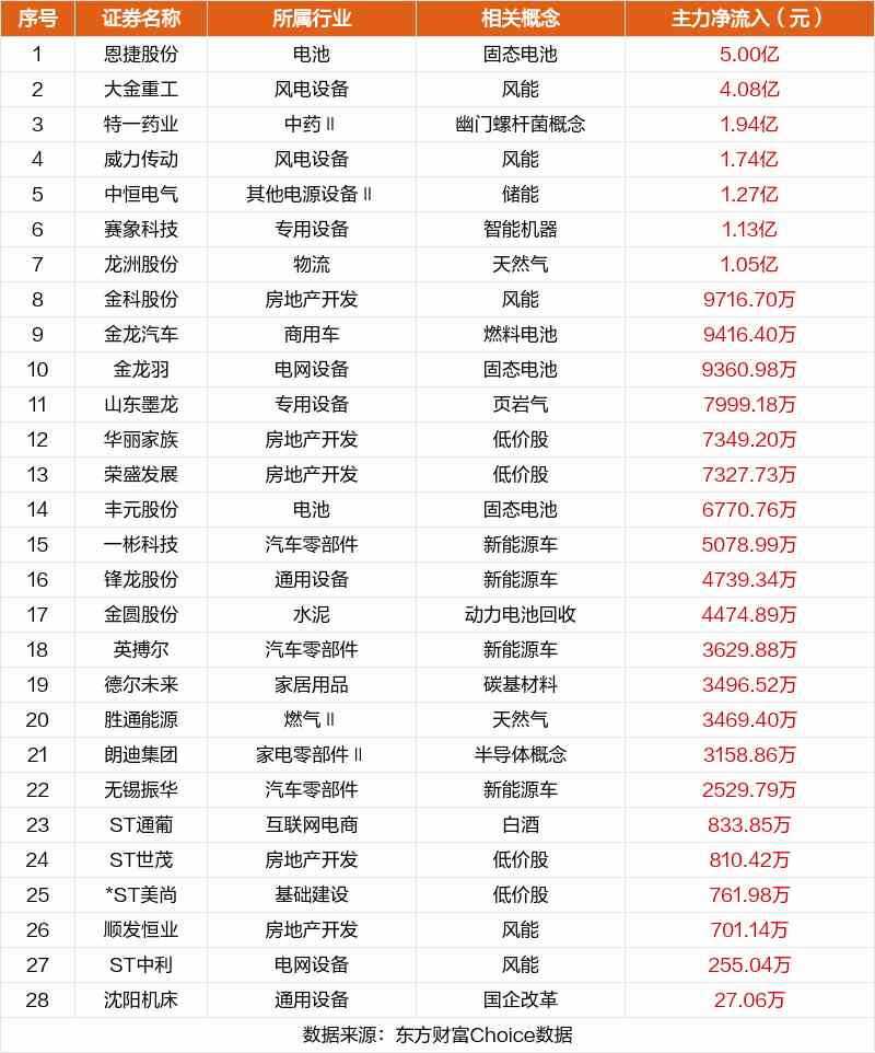 非連板個(gè)股方面,恩捷股份、大金重工、特一藥業(yè)主力資金凈流入居前。