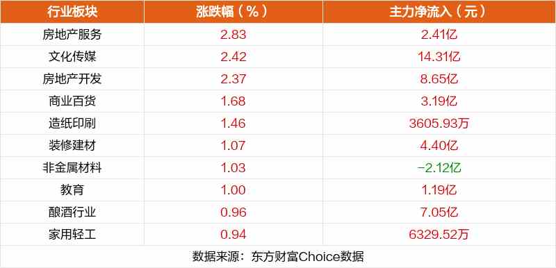 板塊方面,房地產(chǎn)服務(wù)、文化傳媒、房地產(chǎn)開發(fā)等板塊漲幅居前,電子化學(xué)品、半導(dǎo)體、光學(xué)光電子等板塊跌幅居前。