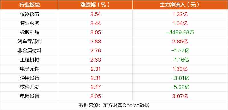 板塊方面,儀器儀表、專業(yè)服務(wù)、橡膠制品等板塊漲幅居前,房地產(chǎn)開發(fā)、房地產(chǎn)服務(wù)、文化傳媒等板塊跌幅居前。
