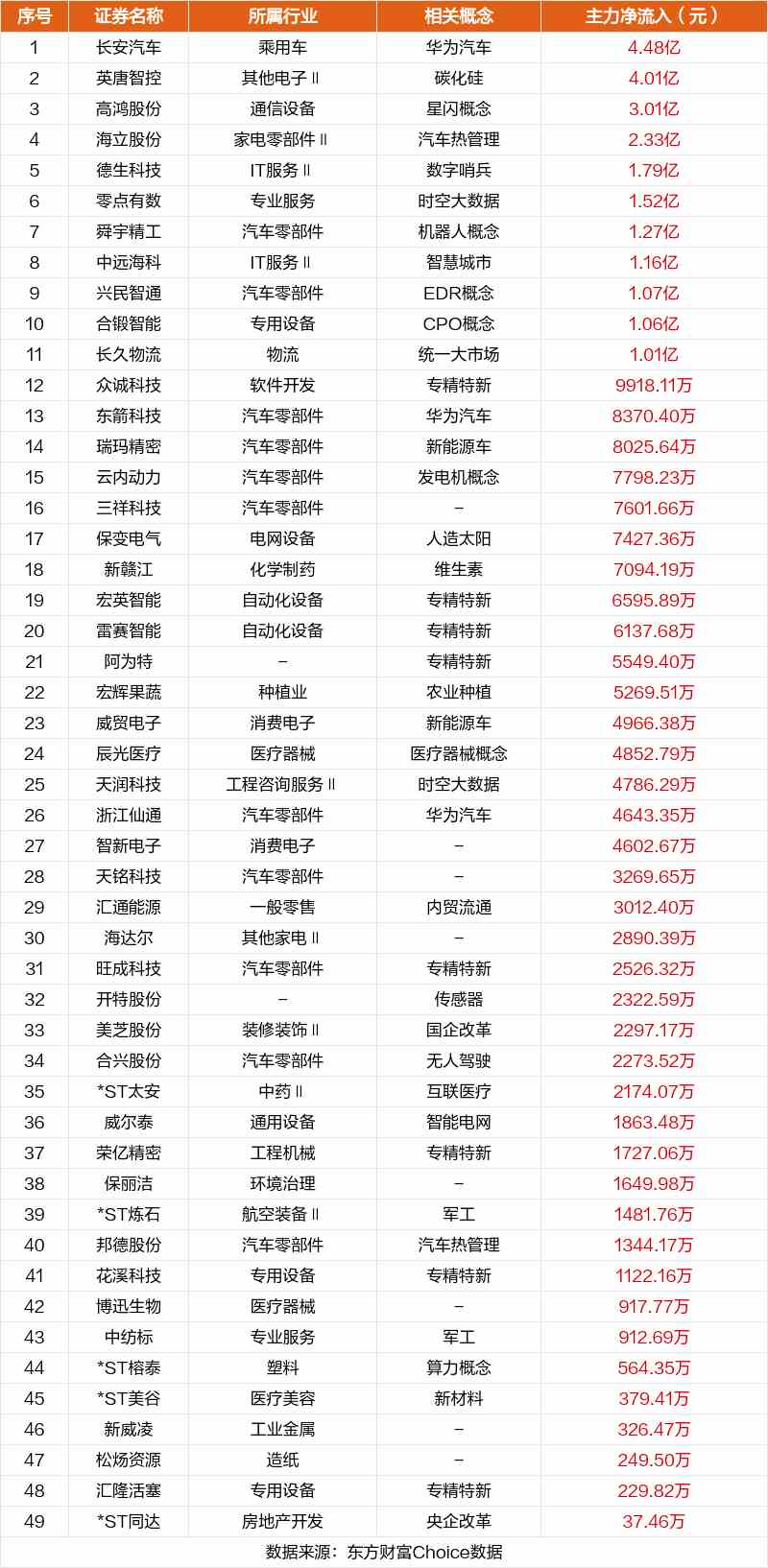 非連板個(gè)股方面,長安汽車、英唐智控、高鴻股份主力資金凈流入居前。