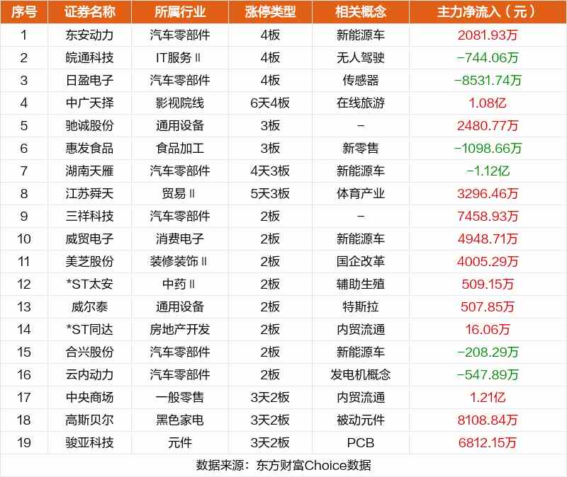 其中,新能源車東安動(dòng)力4板,無(wú)人駕駛皖通科技4板,傳感器日盈電子4板。