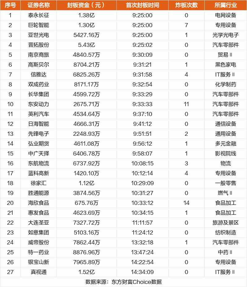 從首次封板時(shí)間角度看,今日27只非ST股中,南京商旅、高斯貝爾、信雅達(dá)等在開盤5分鐘內(nèi)首次觸板。