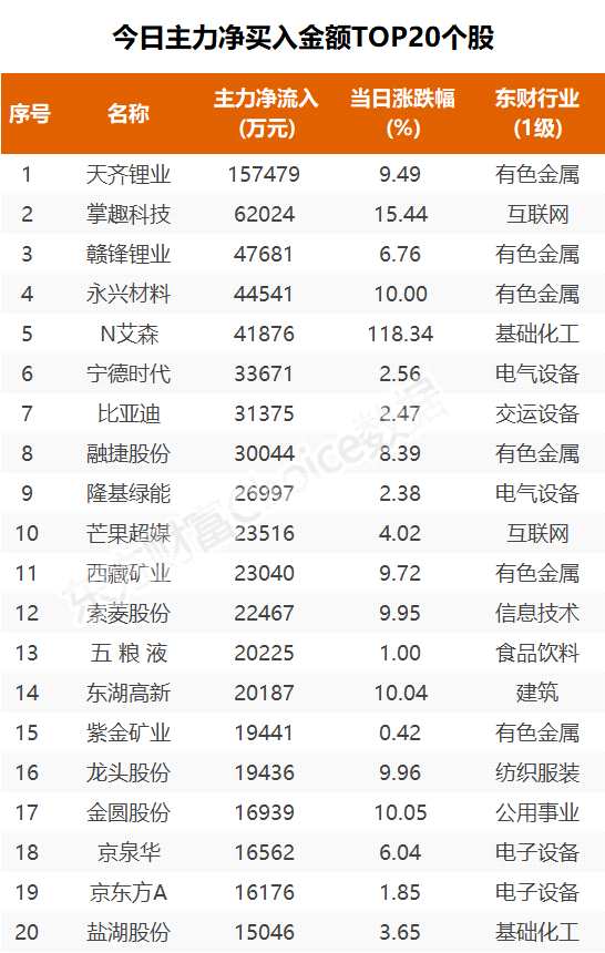 主力復(fù)盤:29億流入能源金屬 15億爆拉天齊鋰業(yè)
