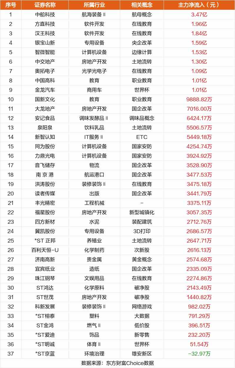 非連板個(gè)股方面,中船科技、方直科技、漢王科技主力資金凈流入居前。