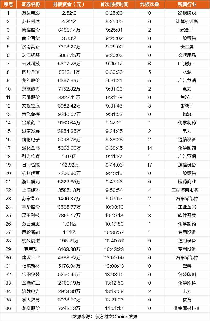 從首次封板時間角度看,今日36只非ST股中,珠江鋼琴、云鼎科技、四川金頂?shù)仍陂_盤5分鐘內(nèi)首次觸板。