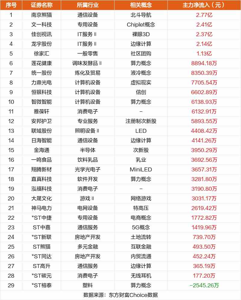 非連板個股方面,南京熊貓、文一科技、佳創(chuàng)視訊主力資金凈流入居前。