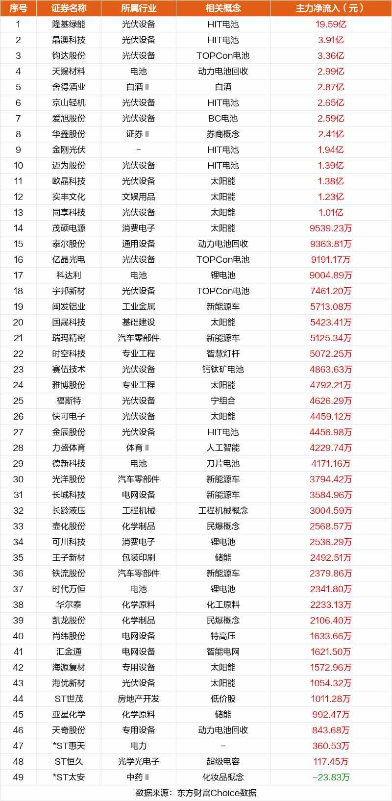 非連板個股方面,隆基綠能、晶澳科技、鈞達股份主力資金凈流入居前。
