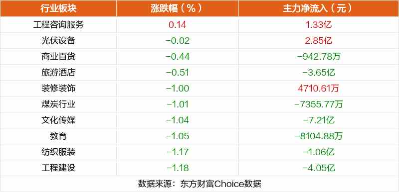 板塊方面,工程咨詢服務(wù)等板塊漲幅居前,半導(dǎo)體、非金屬材料、軟件開發(fā)等板塊跌幅居前。